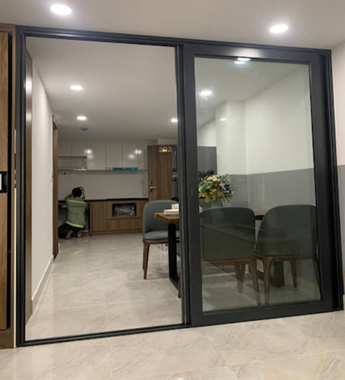 Cửa đi nhôm lùa 2 cánh 2 ray thường được lựa chọn làm