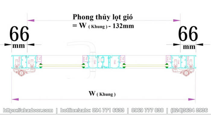 Kích thước cửa đi 2 cánh nhôm kính lệch nhau